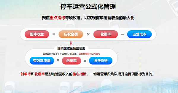 以创单率、收缴率为核心指标,依托有效车流量、创单率、收费价格三大要素,最大化应收金额;以标准化运营推动整体收益提升,让每一个泊位都产生稳定价值。